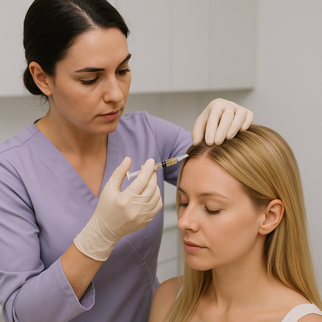 Dr. Kanika Govil, MD, Board-Certified practitioner, precisely injects exosomes into the scalp using fine needles in a quick 10–20 minute procedure. Microneedling may be added to boost absorption and collagen production.